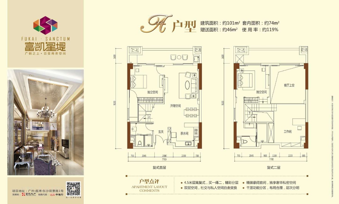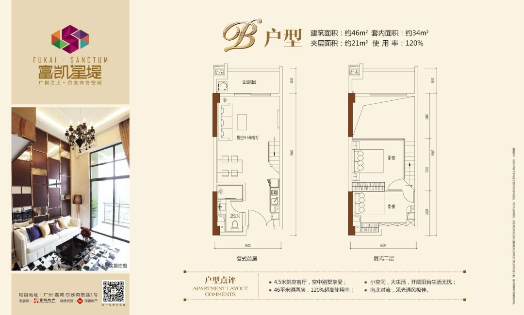 富凯星堤(商用)位于白鹅潭商圈、广钢新城、广州国际医药港、佛山、高铁南站的中核位置,邻广州圆大厦,与敏捷锦绣半岛对望。 【品牌】广州富凯实业有限公司,是中国民营企业500强立白凯晟控股旗下一家以产业地产开发为核心,集投资、项目开发、项目运营、物业服务为一体的综合性产业平台企业。富凯实业依托集团强大的实力和专业化的产业开发及运营团队,公司成立至今先后成功开发运营“立白中心”、“富凯星堤”、“动感小西关”以及“立白科技园”等多个项目。 【区位】广钢新城十年发展大成,北区已形成高端住宅区,南区将打造产业配套区,广钢车辆段商务区为南区重点区域,将与周边央企总部、健康产业及三大旧改,联动发展黄金新十年! 【产品】富凯星堤为一栋单体建筑设计,总层数20层,一楼为商业裙楼,二层至二十层为 。二层露台设计成小型室外网球场。地下2层为配套停车场,地上20层层高为4.5m,标准层4梯22户,总体建筑面积39942㎡,占地面积15442.00㎡。富凯星堤产品类型涵盖46-101㎡的商用物业。