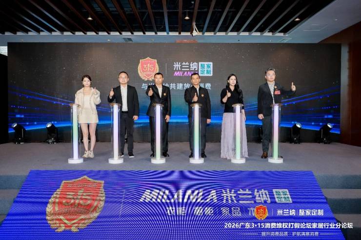 在政府代表、行业协会、企业高层及消费者代表共同见证下,广东315组委会投诉举报中心副主任吴伟华、广东315组委会副秘书长戴峰、索菲亚家居集团副总裁聂凌慧、米兰纳整家定制总经理刘东东、巨量引擎直客业务家电家居行业销售经理卢娜以及百万粉丝家居博主、米兰纳广州业主Ava等六位嘉宾共同启动《2026米兰纳放心消费护航计划》发布仪式。随着启动装置的点亮,米兰纳“放心消费护航计划”正式从战略蓝图步入行动深水区,这不仅标志着品牌透明化承诺的系统性落地,更意味着家居行业信任重构从“单点突破”迈向“体系共建”。