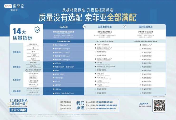 在产品端,索菲亚率先构建了行业领先的5A体系。2025年,索菲亚携手中国林业科学研究院等18家权威机构,共同参与起草并率先执行 “中国定制家5A标准” ,更在广东3·15组委会的共同推动下,驱动了行业上下游产业链的变革和共同进步。该标准系统性地对定制柜的环保、耐用、五金、封边4大维度,提出了全面、可量化的高标准,有效填补了行业在整柜全面质量指标上的空白,为“什么是好定制”树立了标杆。