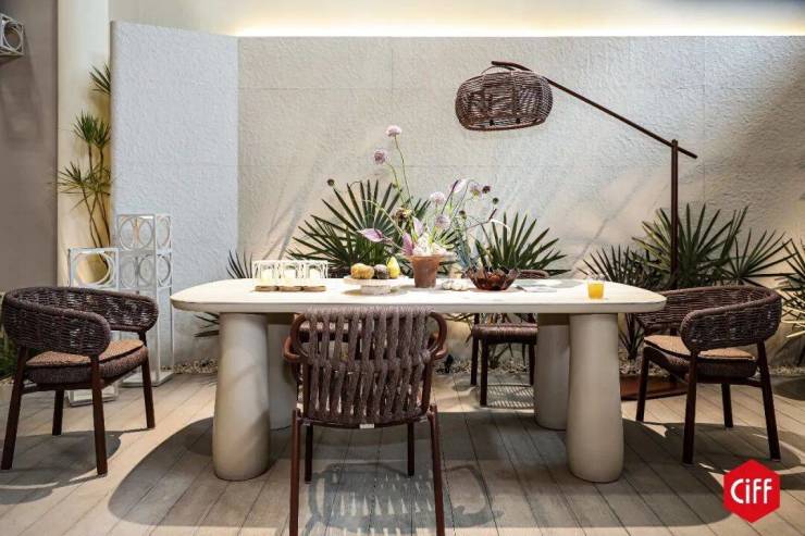 户外家居展区横跨户外全品类,完整呈现从户外家具、遮阳系统到烤炉装备、露营用品的全产业链生态。绿植与自然光点缀其间,展品在真实环境中展现材质特性与应用场景。遮阳技术、防水材料等创新成果吸引专业买家驻足交流,多元展品与行业解决方案在此交汇。