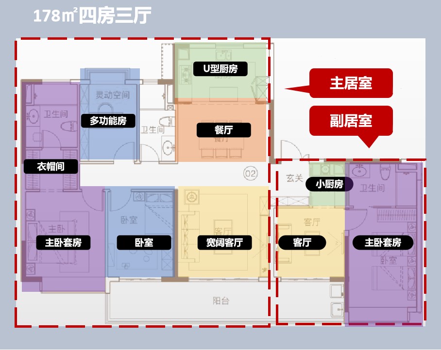 1.专梯专户,超低居住密度,尊享生活静谧; 2.独立双居室,副居室厅/厨/房/卫功能完善,可做长者居室; 3.约10.2m南向大阳台,五开间朝南,通风对流,大面积采光; 4.主卧约2.9m大飘窗,饱览园林景致。